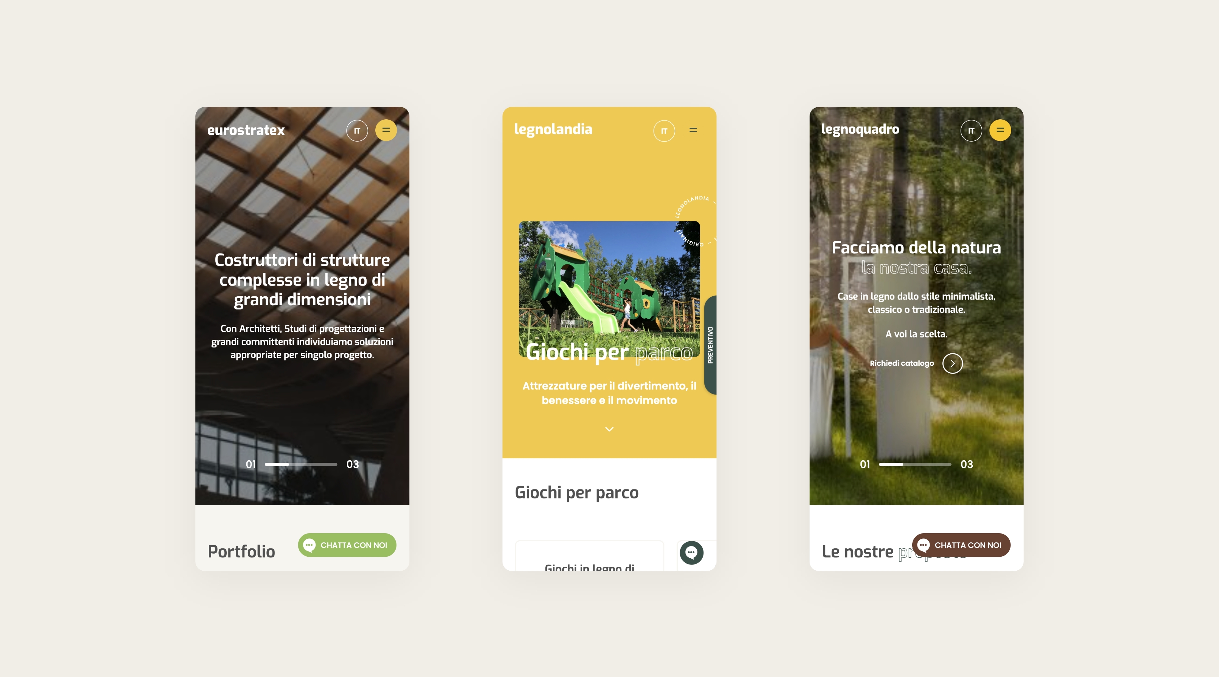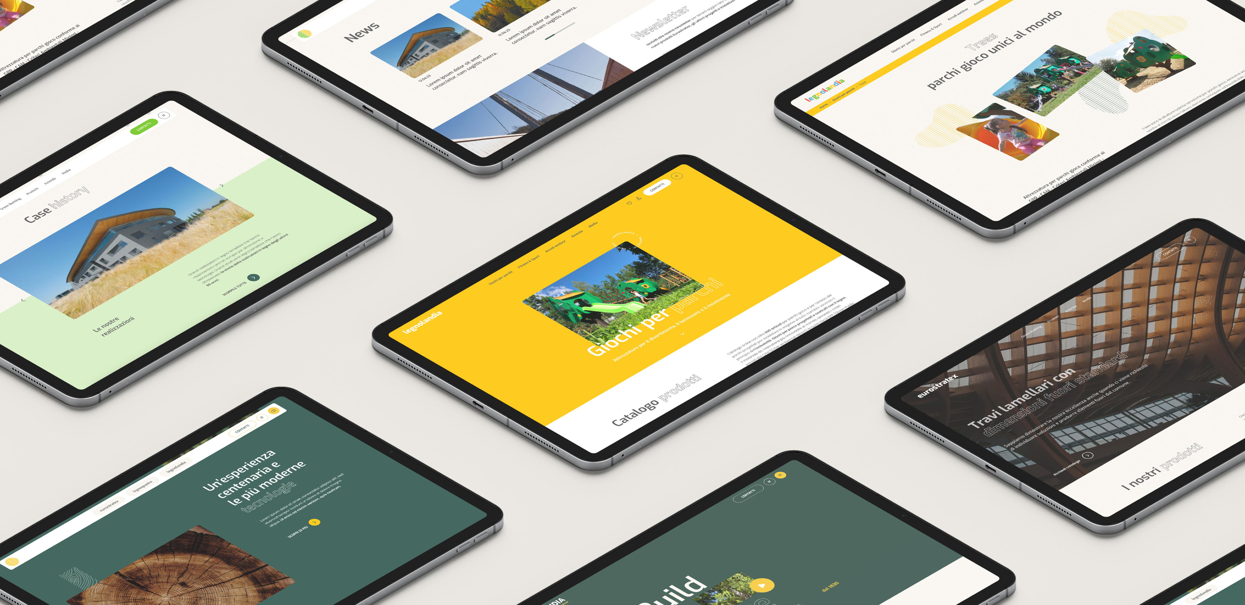 Abbiamo sviluppato un sistema multisito che collega quattro distinte unità di business: Legnolandia Group come hub istituzionale, Legnolandia Play per le strutture da gioco, Eurostratex per gli edifici in legno su larga scala e Legnoquadro per le case sostenibili.